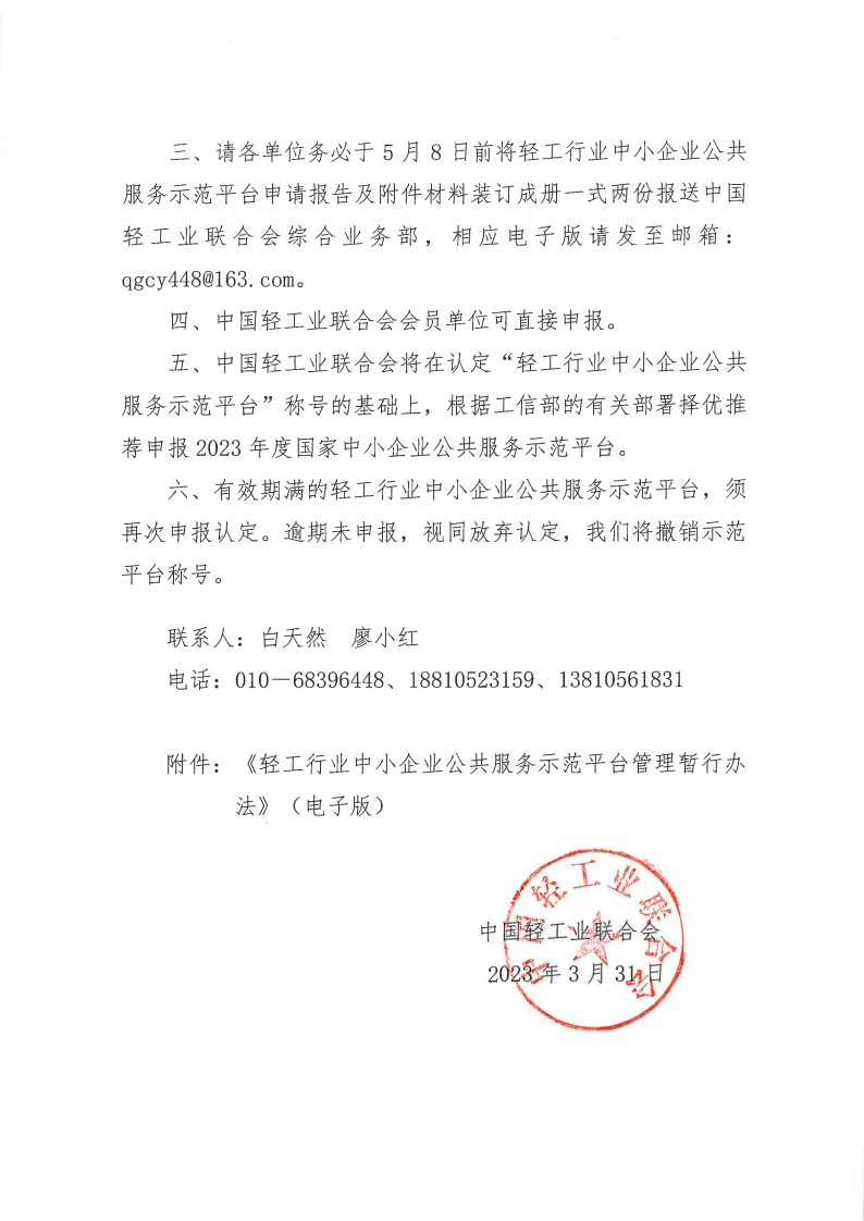 為貫徹落實(shí)中辦、國(guó)辦印發(fā)的《關(guān)于促進(jìn)中小企業(yè)健康發(fā)展的指導(dǎo)意見(jiàn)》,推動(dòng)照明行業(yè)中小企業(yè)服務(wù)平臺(tái)建設(shè),根據(jù)中國(guó)輕工業(yè)聯(lián)合會(huì)《關(guān)于組織開(kāi)展2023年度輕工行業(yè)中小企業(yè)公共服務(wù)示范平臺(tái)認(rèn)定工作的通知》的要求,我協(xié)會(huì)將負(fù)責(zé)照明行業(yè)中小企業(yè)公共服務(wù)示范平臺(tái)申報(bào)的組織和推薦工作,請(qǐng)相關(guān)單位按照要求,做好申報(bào)工作,并于5月4日前將紙質(zhì)版材料一式三份和電子版一并報(bào)送協(xié)會(huì)。(相關(guān)文件詳見(jiàn)附件)