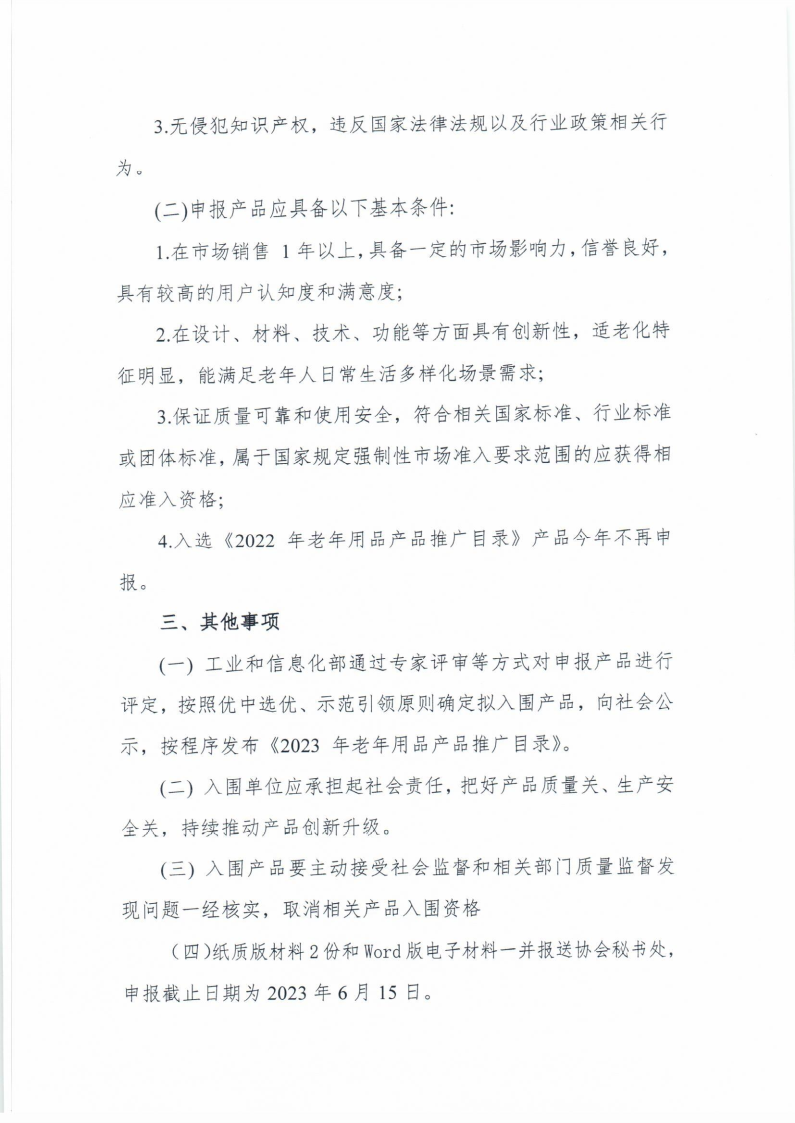 關于面向照明行業組織申報 2023年老年用品推廣目錄的通知
